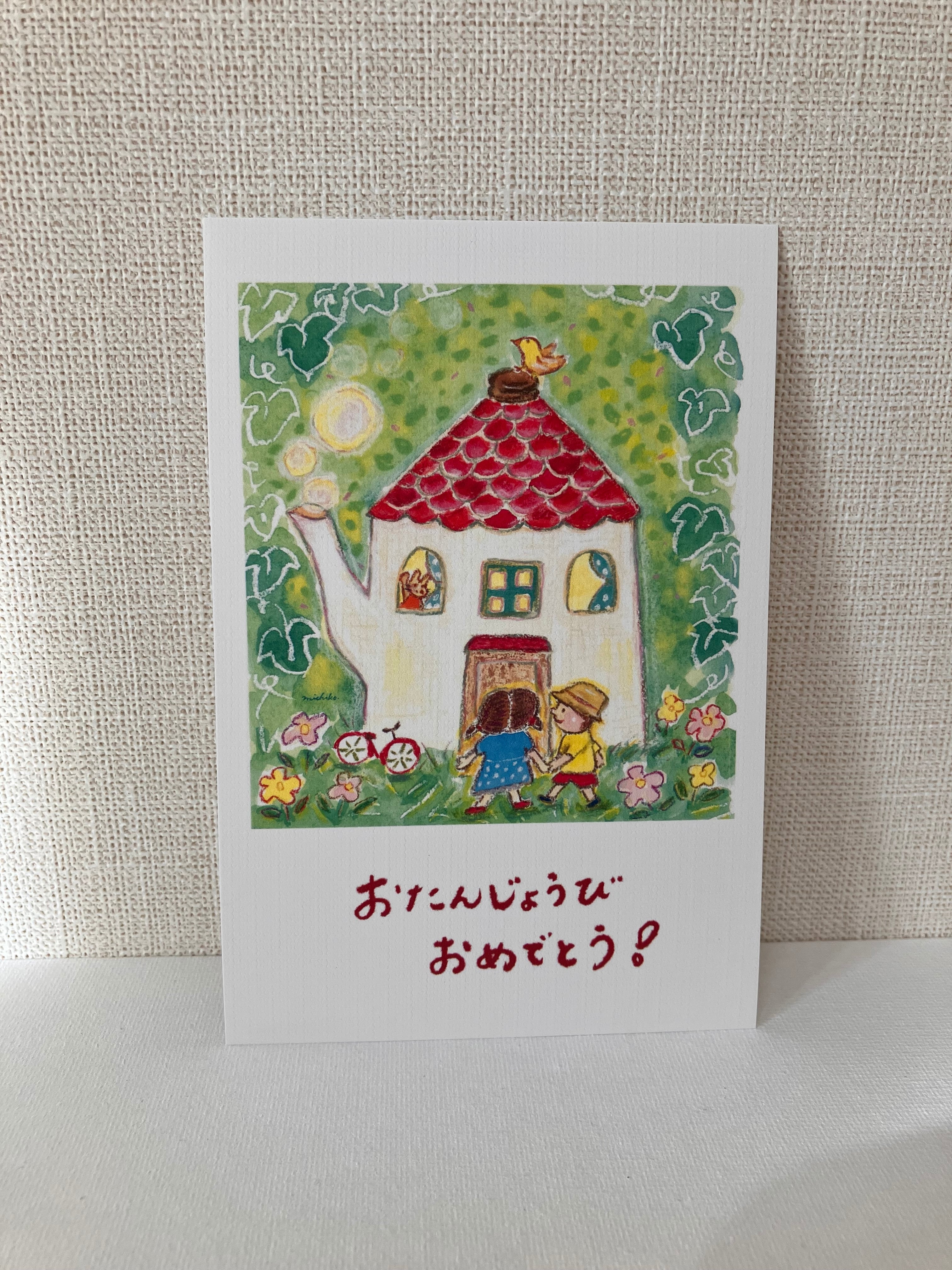 2025年 個展で飾った原画、タイトル「Welcome 」をもとにバースデーカードにしました。